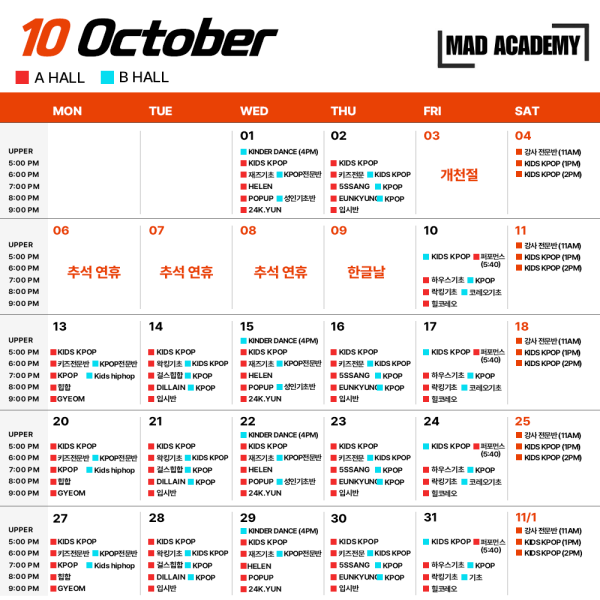 10월 스케줄